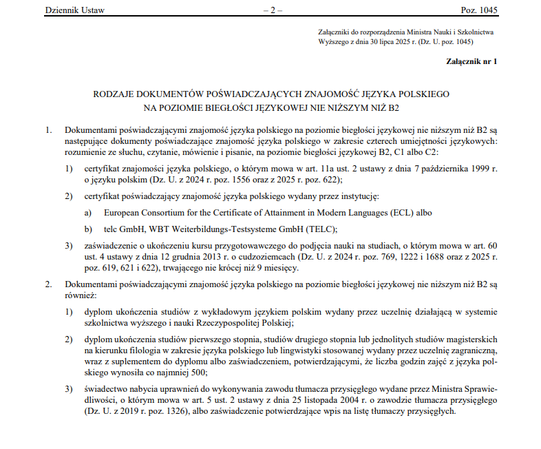 Sprawdź czy możemy zaakceptować Twój dokument potwierdzający znajomość języka polskiego poniżej.